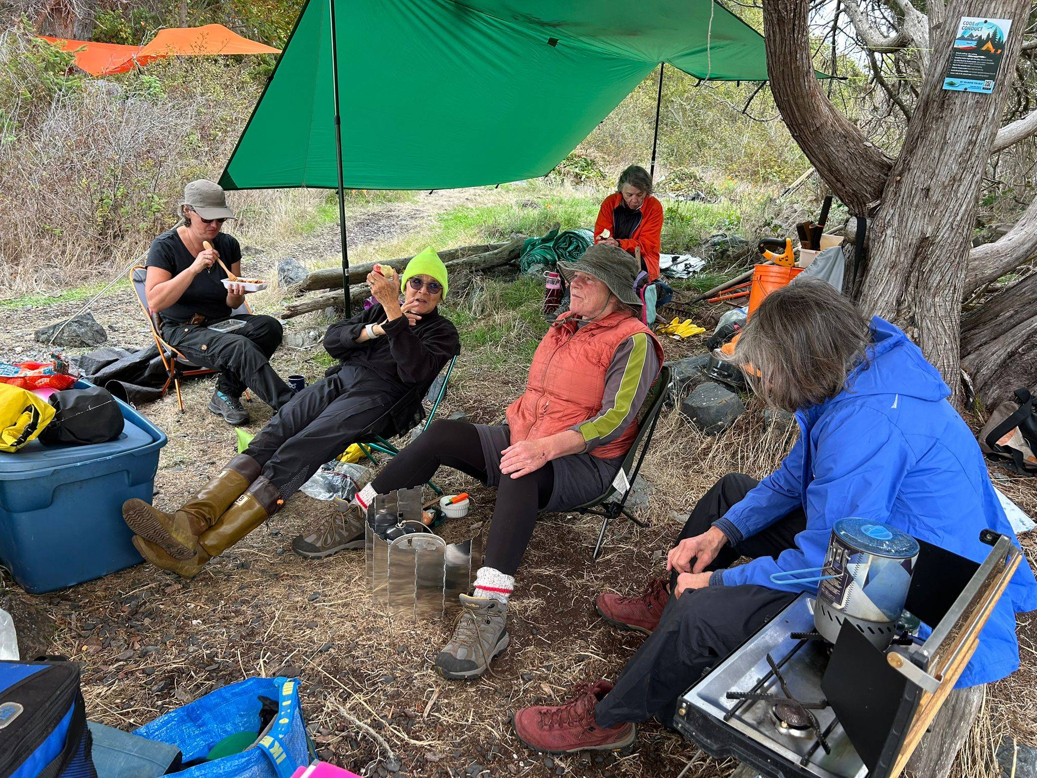 From September 25-28th, a small but mighty crew braved strong winds and rain to continue our work restoring the coastal bluff ecosystem of Gerald Island. While many registered volunteers couldn’t make it due to the weather, thirteen participants joined over the four days, logging an impressive 284 volunteer hours!