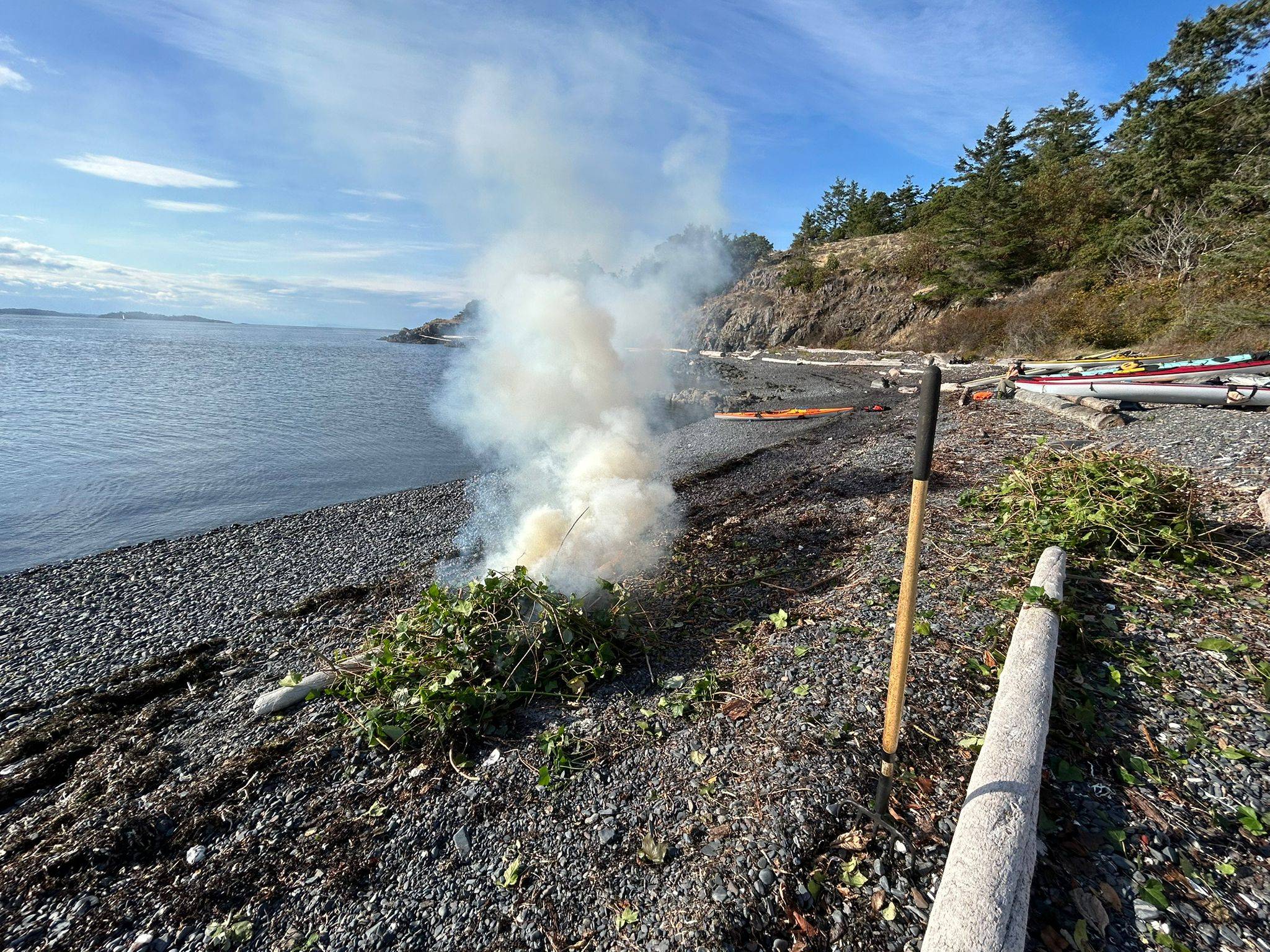 In the last week of September, the Western Canada Marine Response Corporation sent out landing crafts to remove marine debris from BC Marine Trails drop zones on Vargas Island. 440 pounds of debris were removed (including several large foam blocks!), thanks to recreationists piling debris all summer long, and reporting through BCMT Site Condition Reports.
